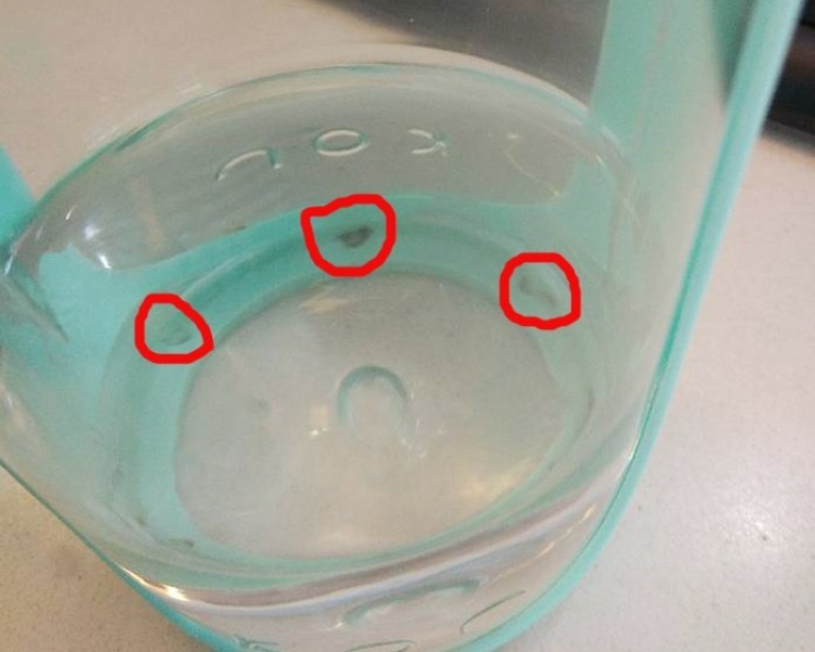 1.1如下图所示是塑料杯夹层发霉,此外夹层可起到防摔和防烫的作用,但容易沾染灰尘,并且可为霉菌提供生长环境,长霉后,无法轻易清除,而且有的霉菌对健康有害,但是呢,这个问题其实在生产时就可以解决的,如果你不知道的话,那就看看我们团队为解决此问题设计的方案吧。